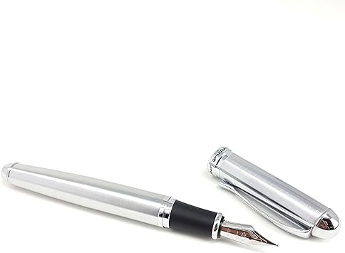 Amazon Com Pluma Fuente Parker Im Punta Fina De Metal Satinado Con Recarga De Tinta Azul 1931649 Negro Y Dorado Office Products